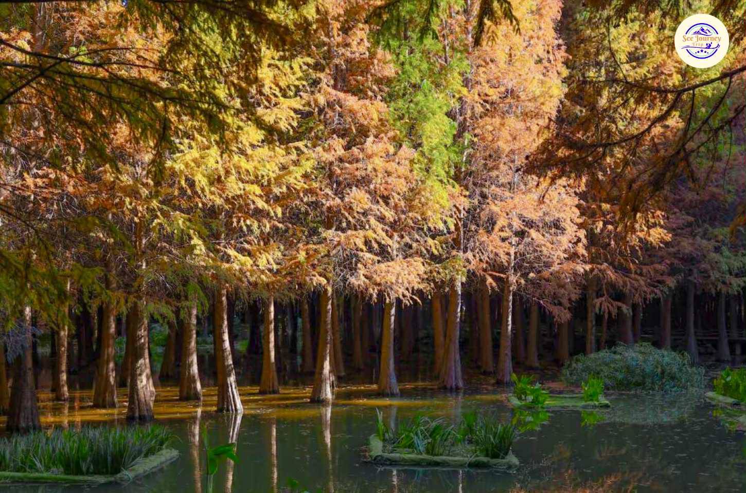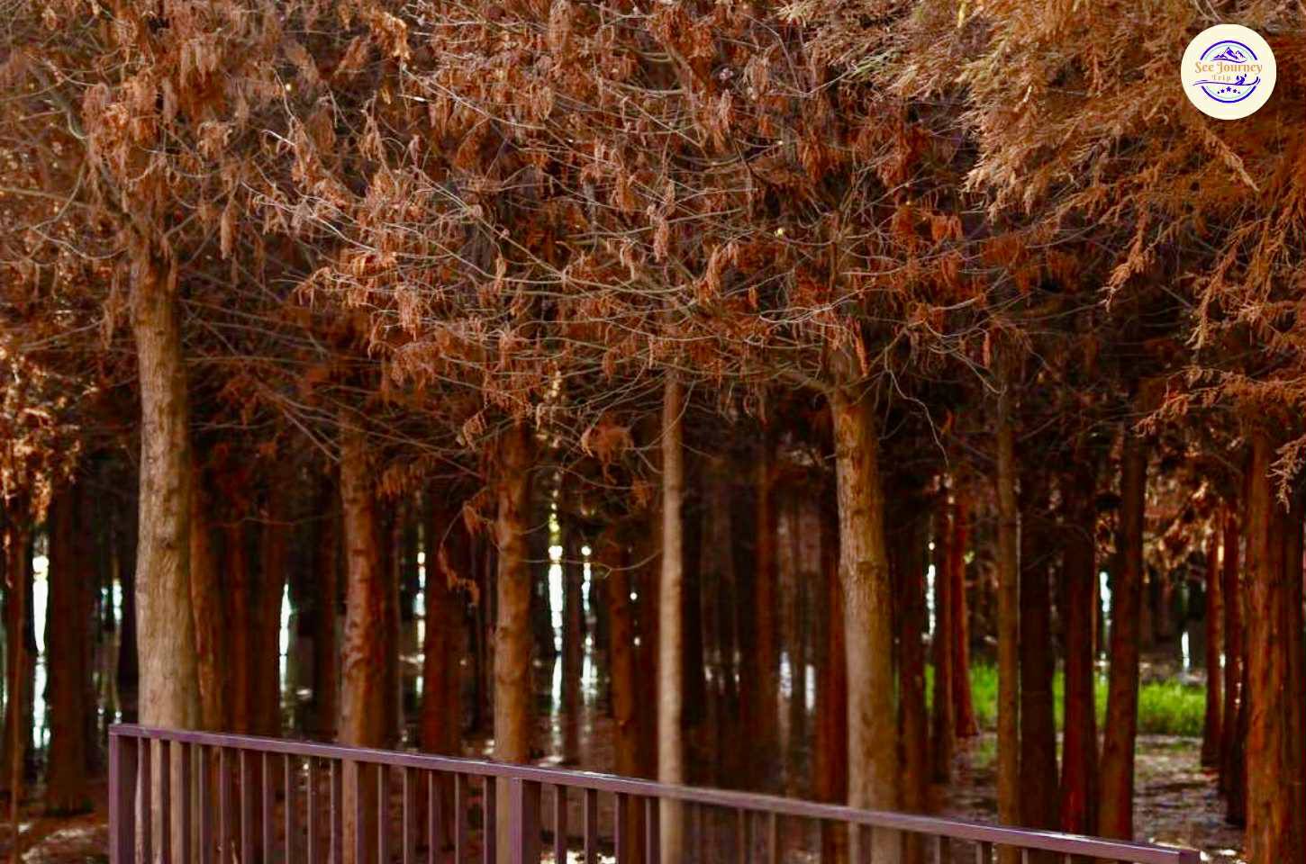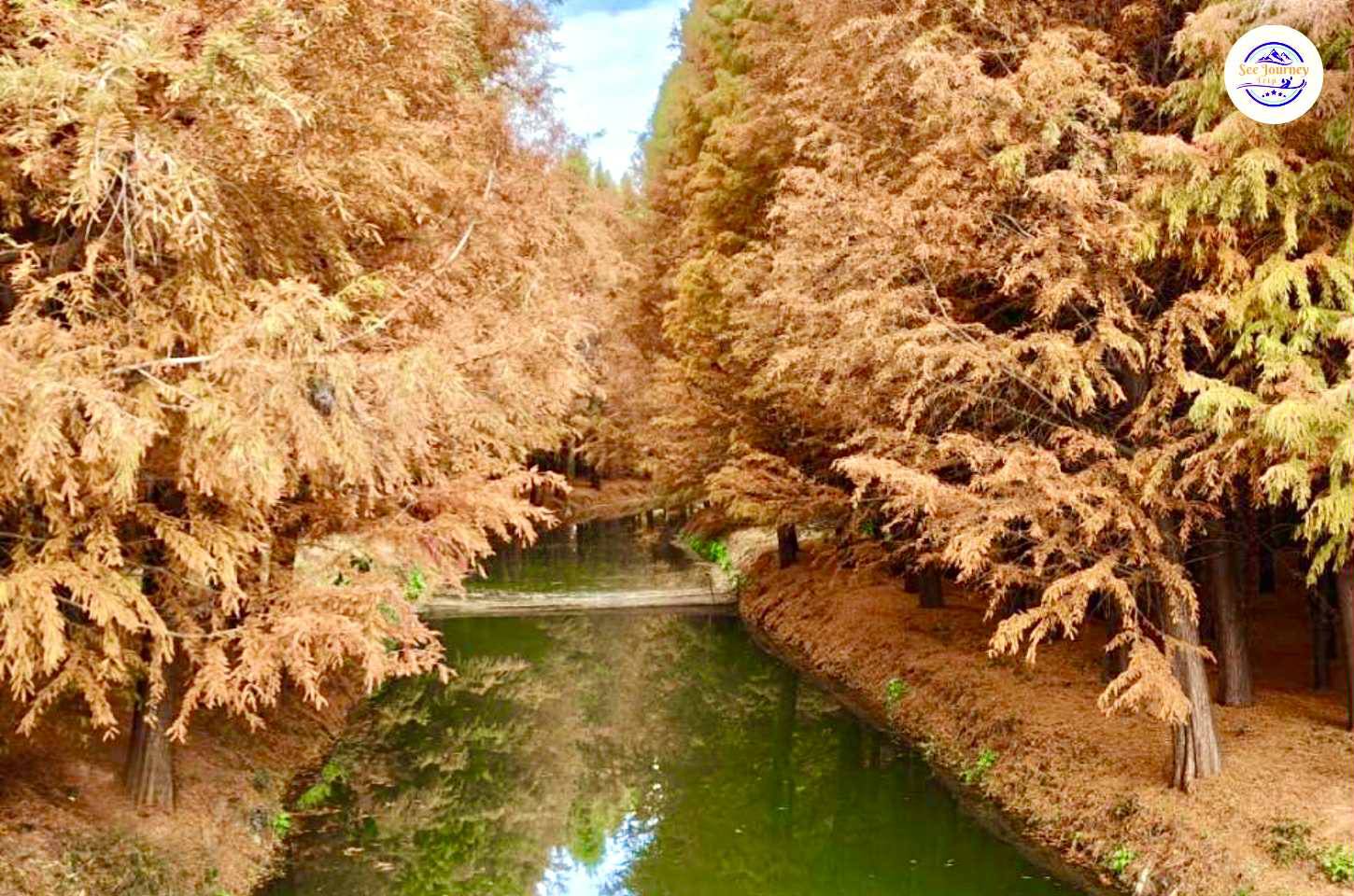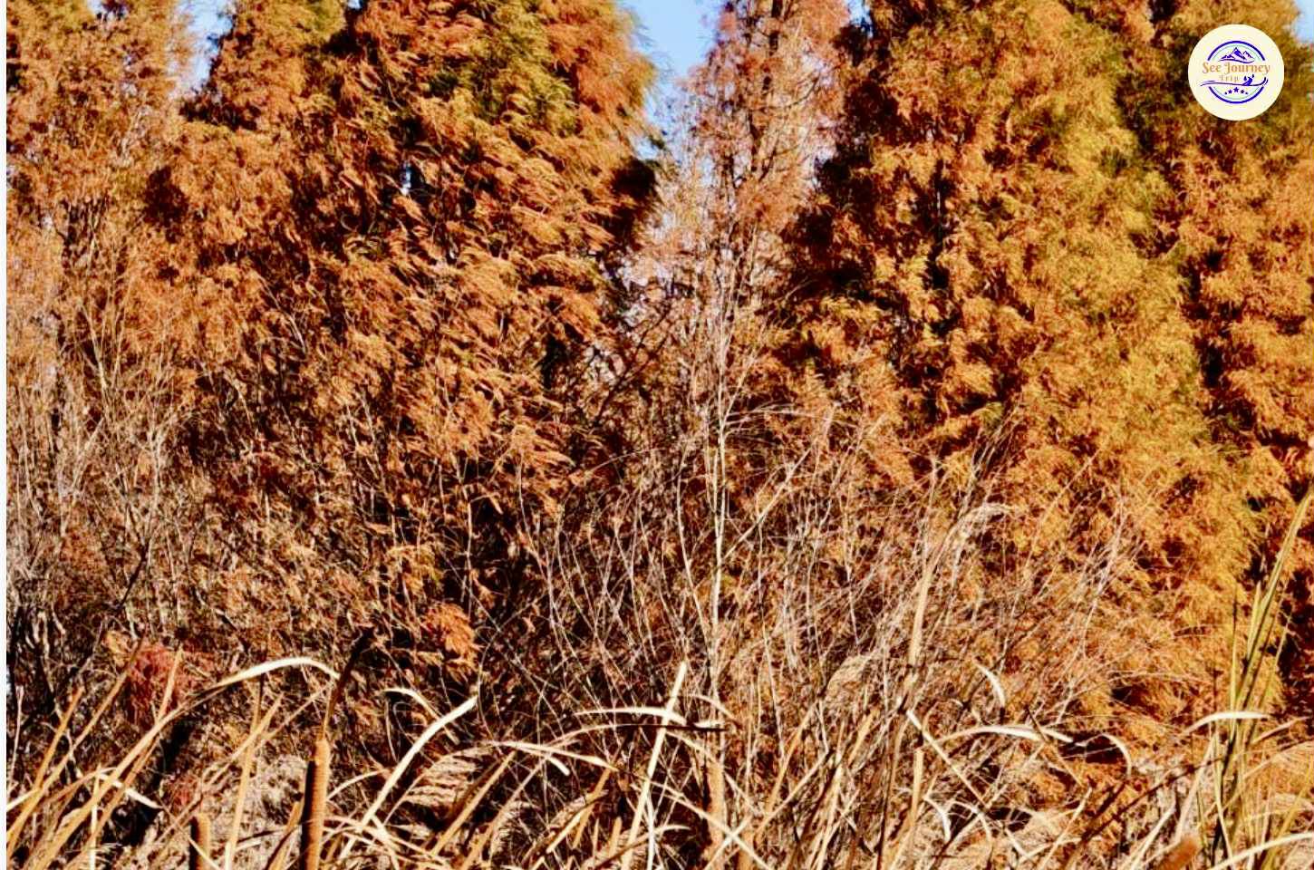 LAOYUHE WETLAND PARK ป่าสนสีทองแห่งรุ่งอรุญในแสงแรกของวัน