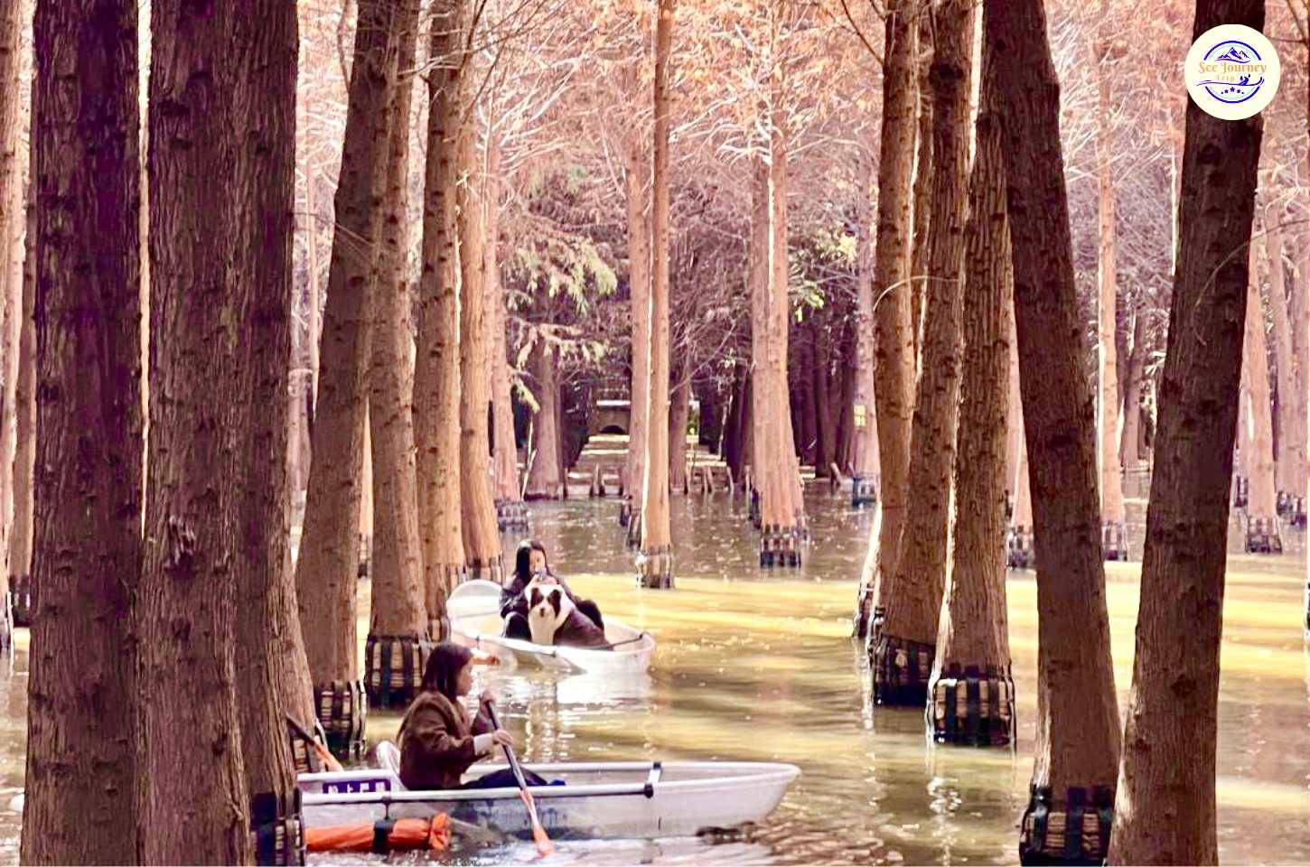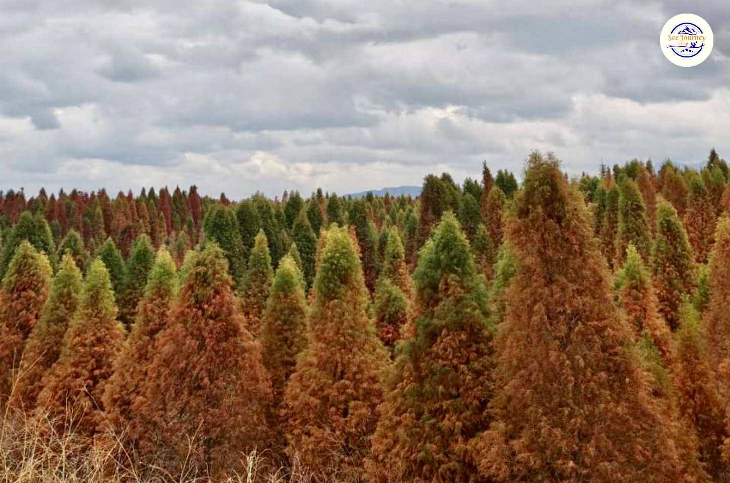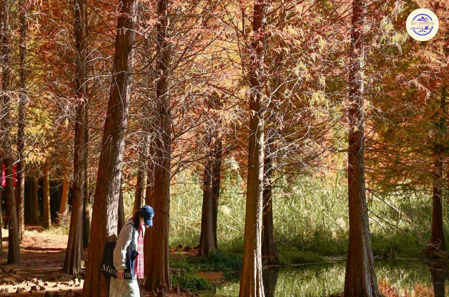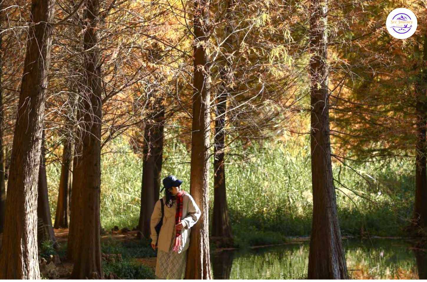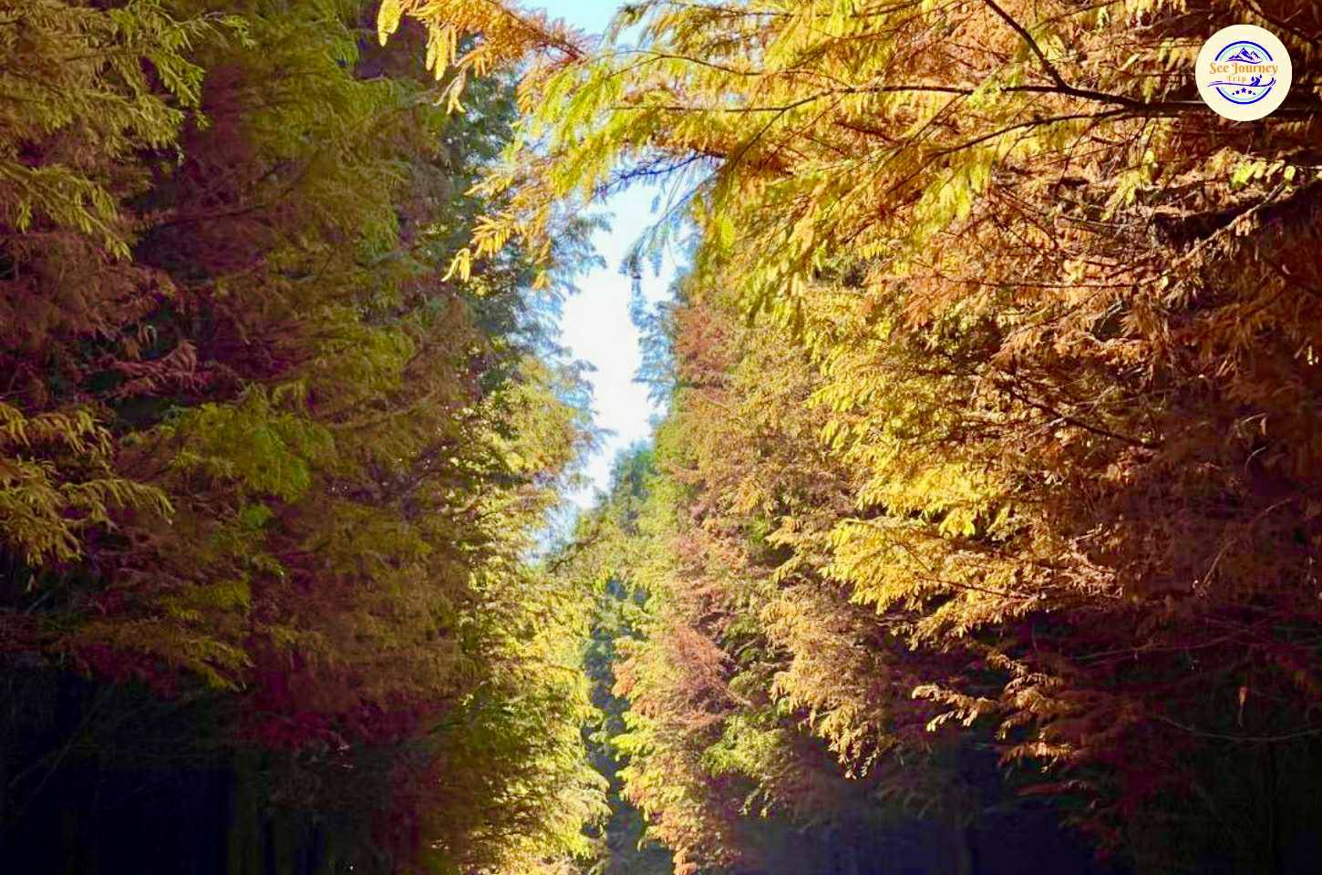 LAOYUHE WETLAND PARK ป่าสนสีทองแห่งรุ่งอรุญในแสงแรกของวัน