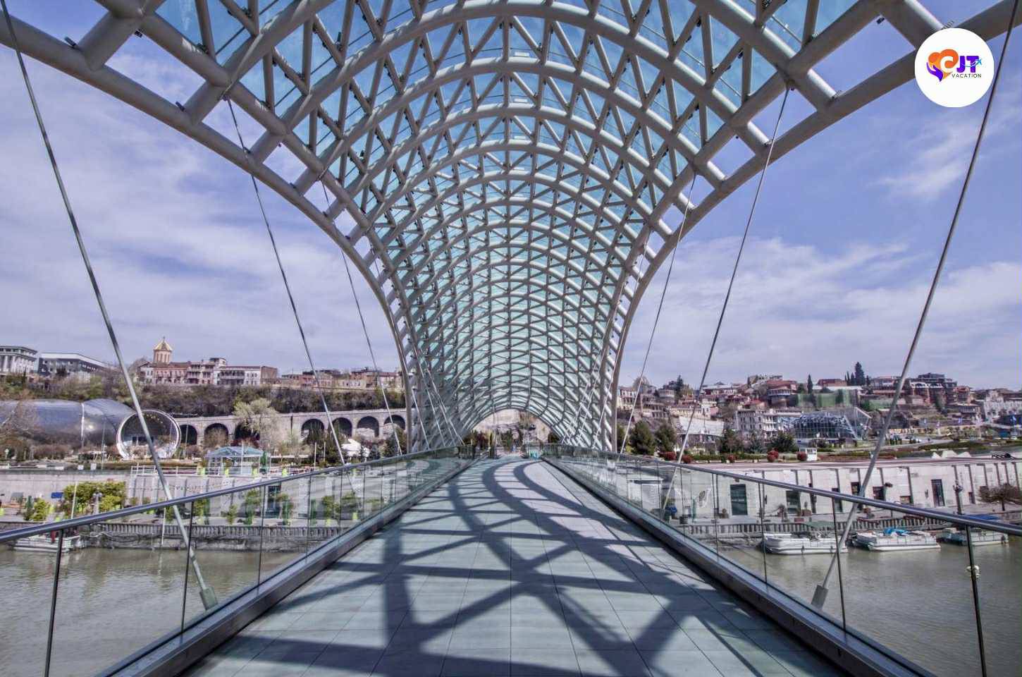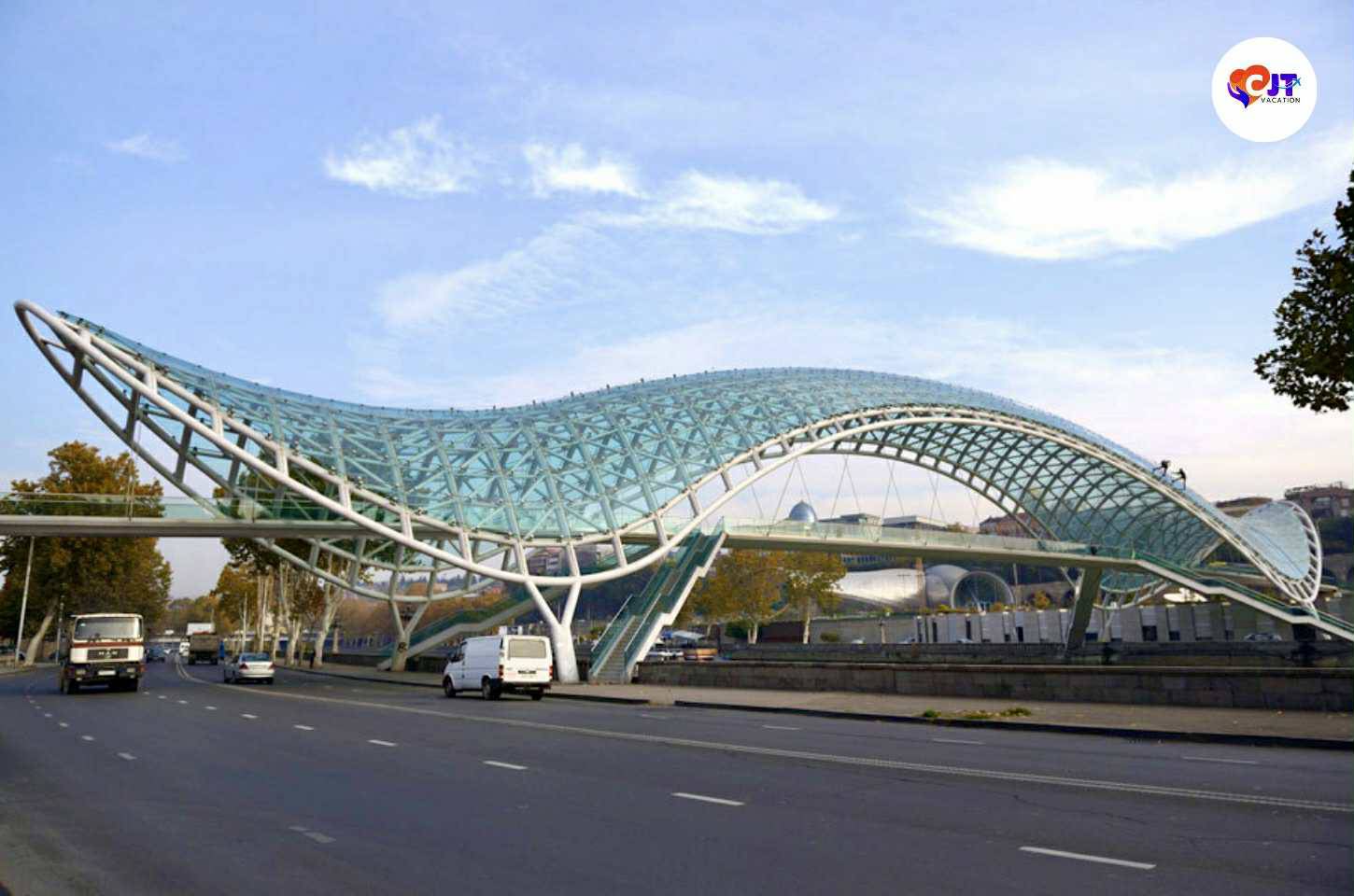 ทบิลิซี เมืองหลวงที่เต็มไปด้วยเสน่ห์แห่งประวัติศาสตร์และวัฒนธรรมโบราณ ได้รับการแต่งแต้มด้วยสัญลักษณ์แห่งความทันสมัยที่โดดเด่นที่สุด “สะพานแห่งสันติภาพ” (Bridge of Peace) สะพานกระจกและเหล็กกล้าอันสง่างามที่ทอดข้ามแม่น้ำคูรา ราวกับสายรุ้งที่เชื่อมโยงอดีตกับปัจจุบันเข้าด้วยกันอย่างงดงามยิ่ง นักเดินทางจากทั่วโลกต่างหลงใหลในความงดงามที่ทั้งล้ำสมัยและเต็มไปด้วยความหมายลึกซึ้ง สะพานนี้ไม่เพียงเป็นทางเดิน หากแต่ยังเป็นสัญลักษณ์ของความสงบสุขและความเชื่อมโยงระหว่างผู้คน