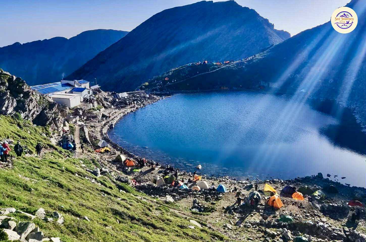 4. ทะเลสาบน้ำแข็ง (冰川湖泊) บนภูเขามีทะเลสาบขนาดเล็กหลายแห่ง ที่เกิดจากการละลายของธารน้ำแข็ง เป็นจุดถ่ายภาพที่สะท้อนความงดงามของฟ้าและภูเขา