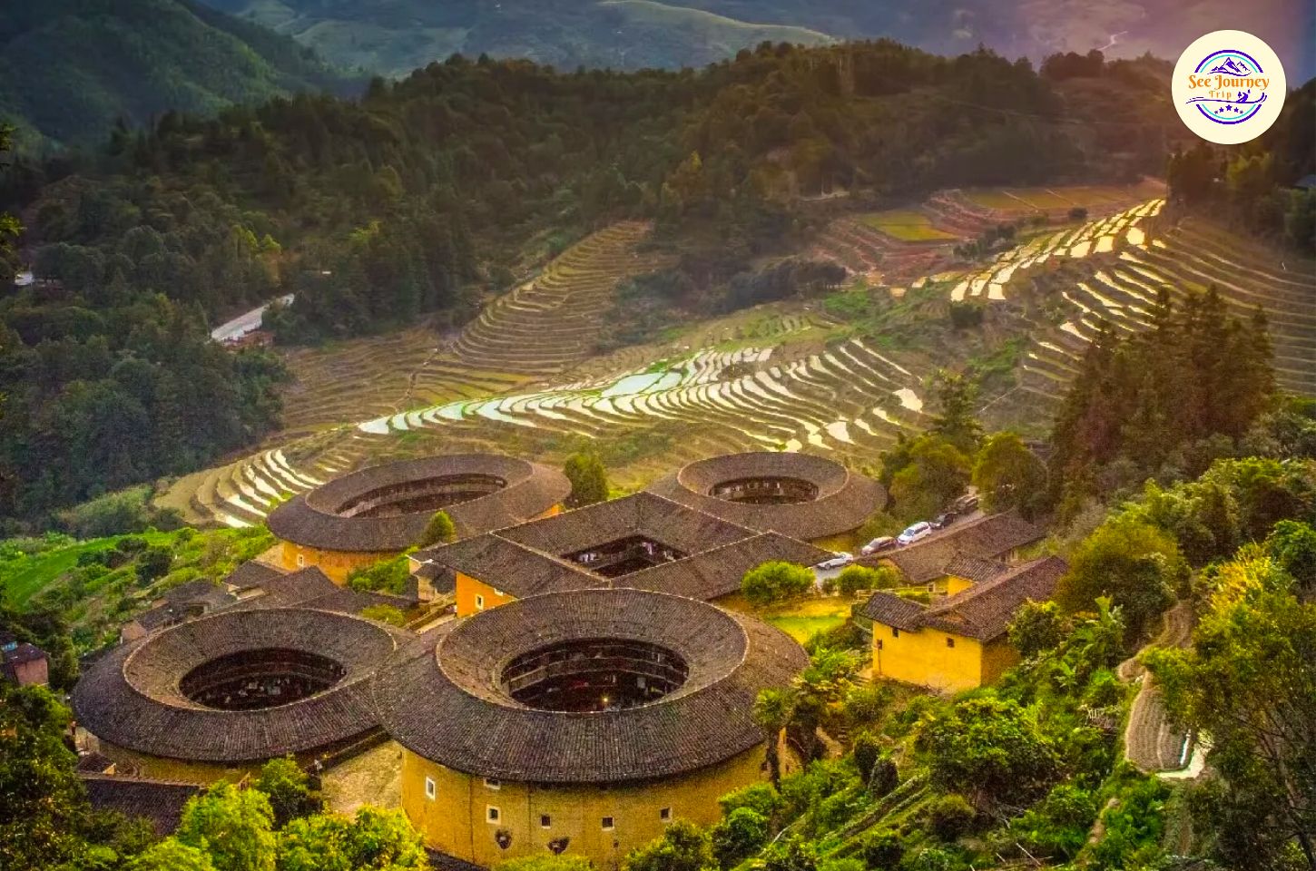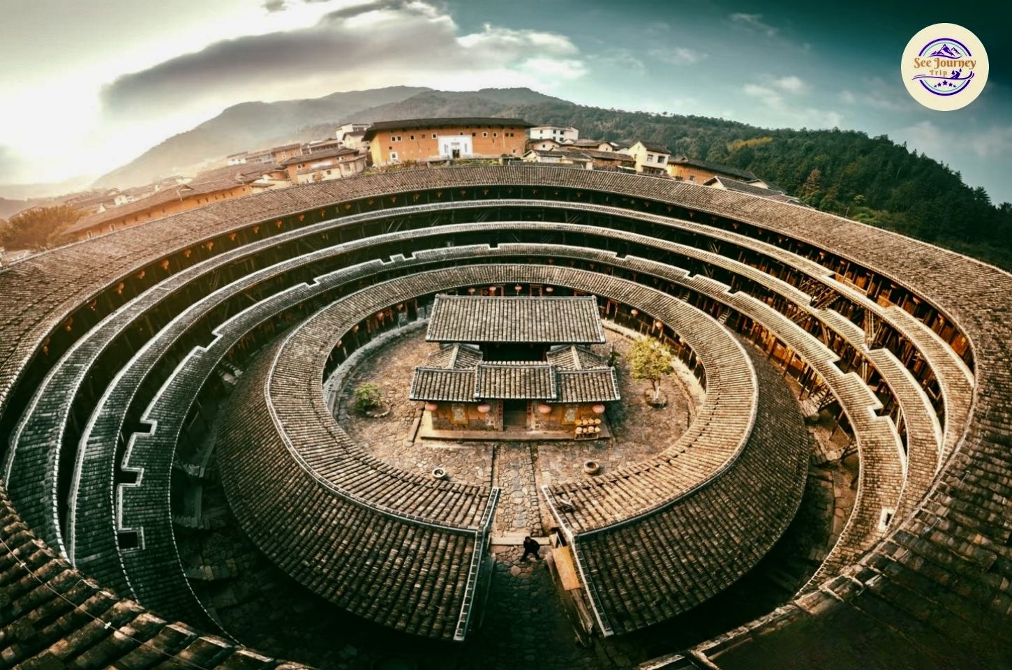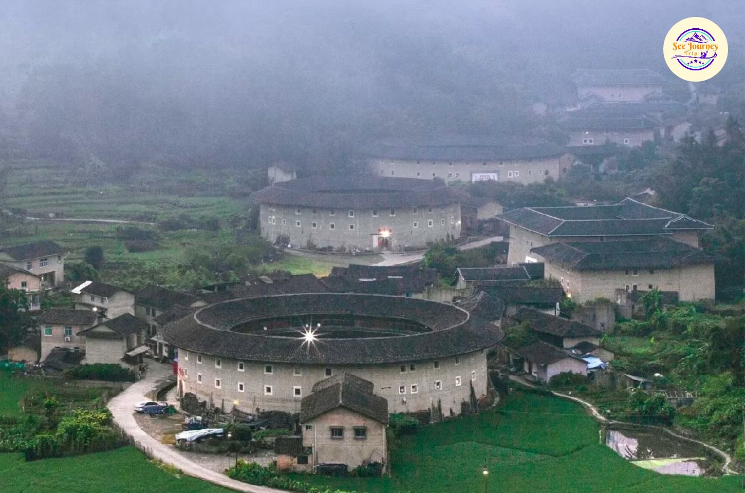 เพื่อน ๆ ลองจินตนาการว่าเพื่อน ๆ ยืนอยู่บนจุดชมวิวสูง แล้วมองลงไปเห็นบ้านดินขนาดมหึมาเรียงตัวเป็นวงกลมซ้อนกันหลายชั้น โอบล้อมด้วยภูเขาสีเขียวเข้มและสายหมอกบาง ๆ ที่ลอยคลอเคลียในยามเช้า… ภาพตรงหน้าเพื่อน ๆ จะคล้ายฉากในภาพยนตร์แฟนตาซี แต่ที่นี่คือของจริงที่คุณสามารถสัมผัสได้