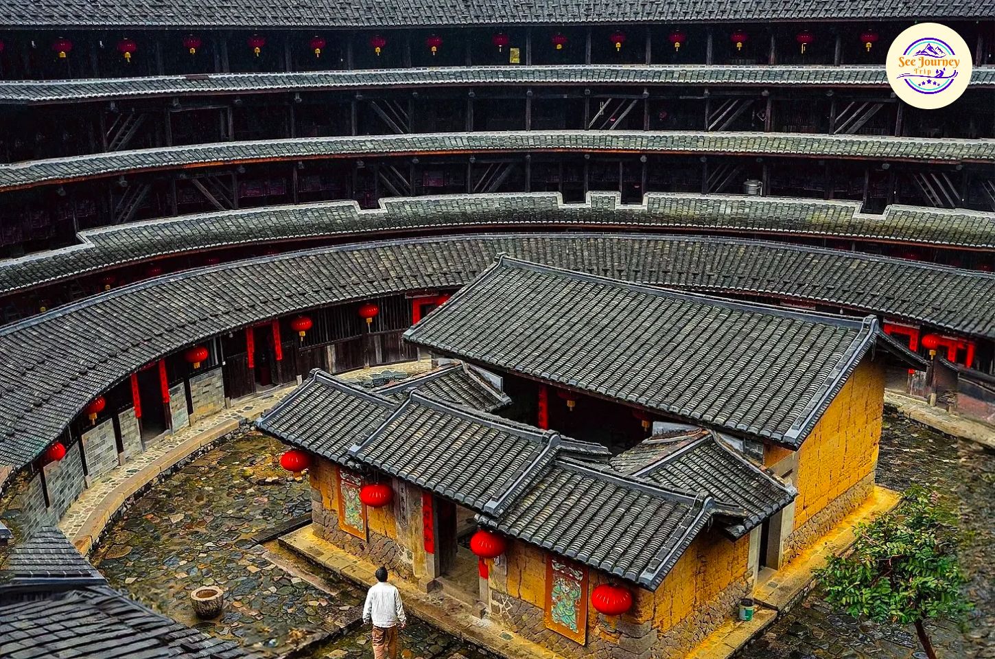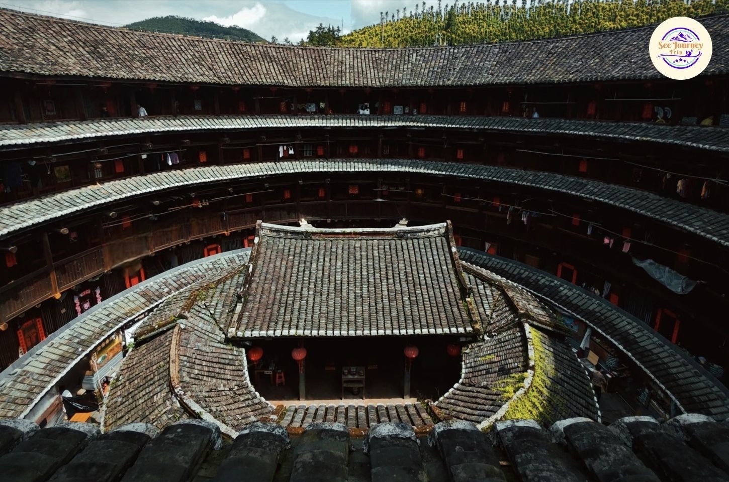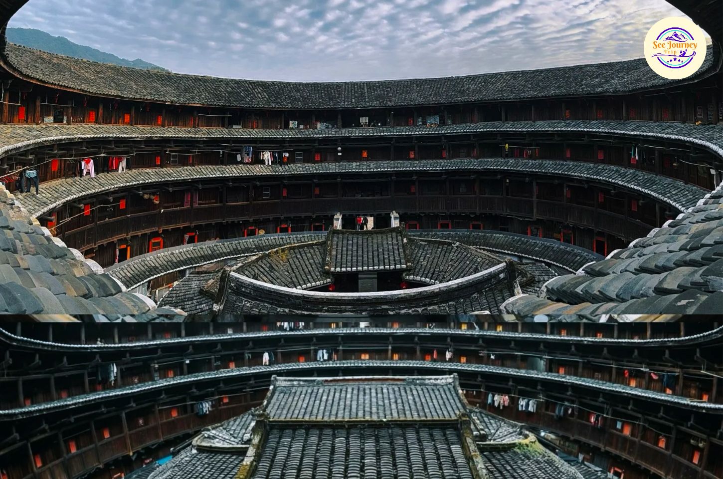 เพื่อน ๆ ลองจินตนาการว่าเพื่อน ๆ ยืนอยู่บนจุดชมวิวสูง แล้วมองลงไปเห็นบ้านดินขนาดมหึมาเรียงตัวเป็นวงกลมซ้อนกันหลายชั้น โอบล้อมด้วยภูเขาสีเขียวเข้มและสายหมอกบาง ๆ ที่ลอยคลอเคลียในยามเช้า… ภาพตรงหน้าเพื่อน ๆ จะคล้ายฉากในภาพยนตร์แฟนตาซี แต่ที่นี่คือของจริงที่คุณสามารถสัมผัสได้