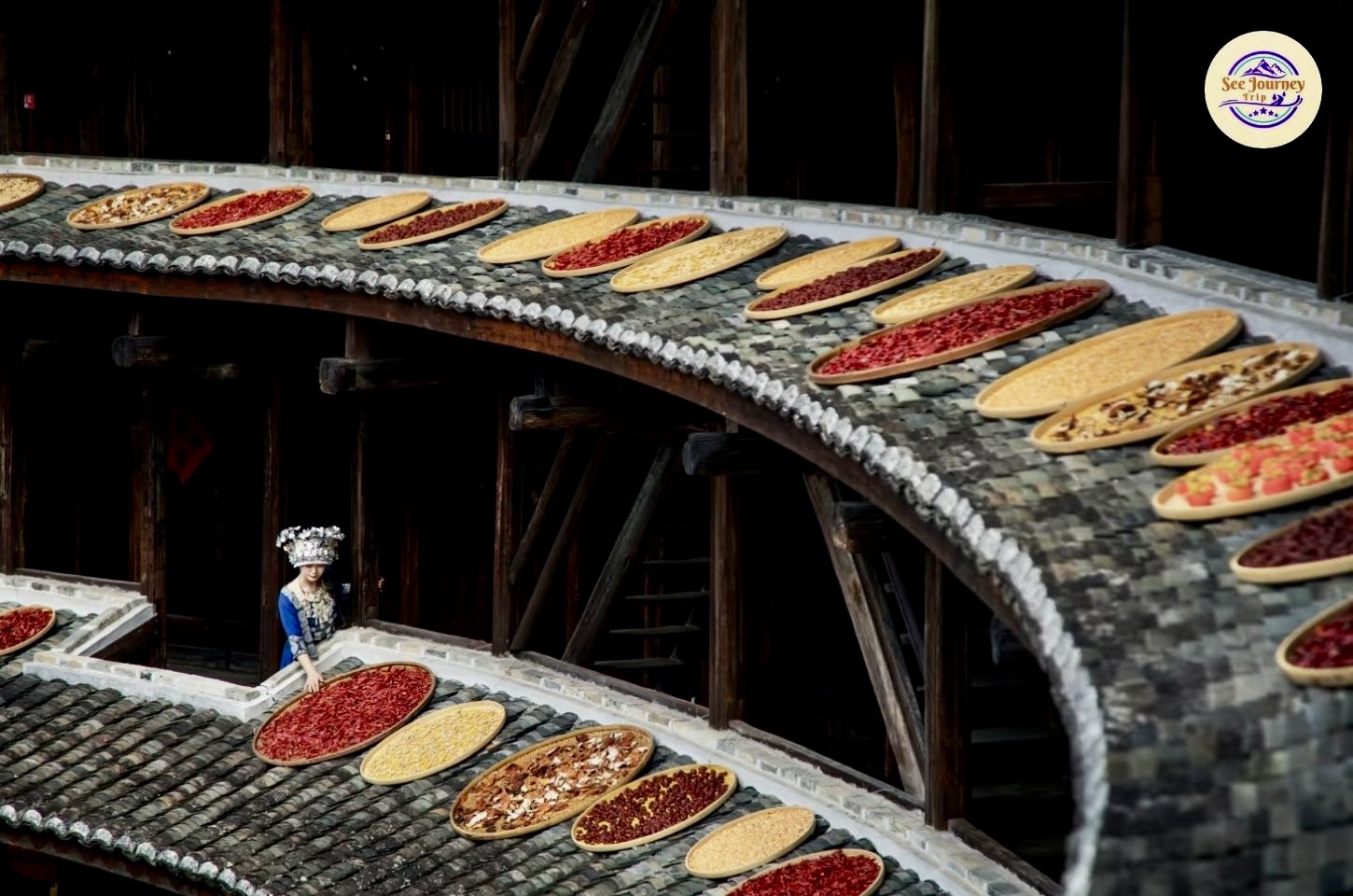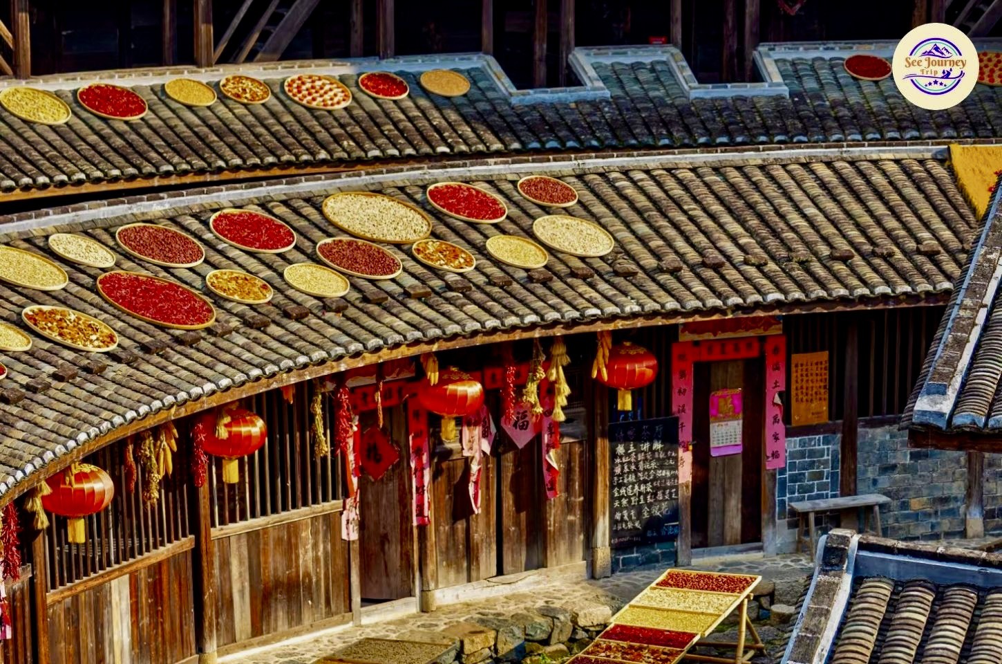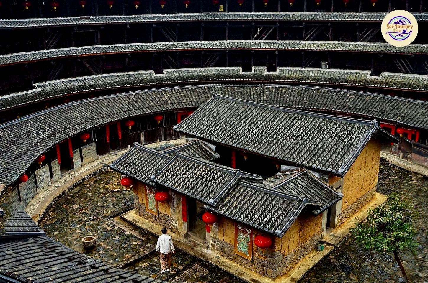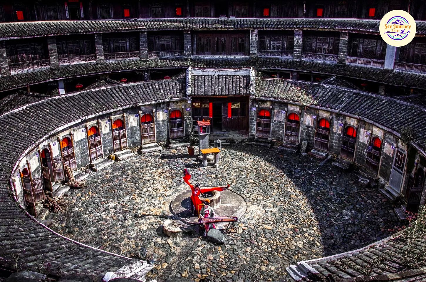 เมื่อก้าวเข้าสู่ภายในของ "ถูโหลว" คุณจะได้สัมผัสความงามอีกแบบที่เต็มไปด้วยรายละเอียด โครงสร้างไม้ที่เรียงตัวอย่างเป็นจังหวะ ระเบียงที่โค้งไปตามรูปวงแหวน และแสงธรรมชาติที่ส่องลอดลงมาจากด้านบน สร้างเงาและลวดลายที่เปลี่ยนไปตลอดวัน ทุกก้าวที่เดินเหมือนได้พบมุมภาพใหม่ ๆ ที่ทั้งอบอุ่น คลาสสิก และมีชีวิต เหมาะสำหรับการถ่ายภาพที่ต้องการเล่าเรื่อง ไม่ว่าจะเป็นภาพสถาปัตยกรรมหรือภาพวิถีชีวิตของผู้คน