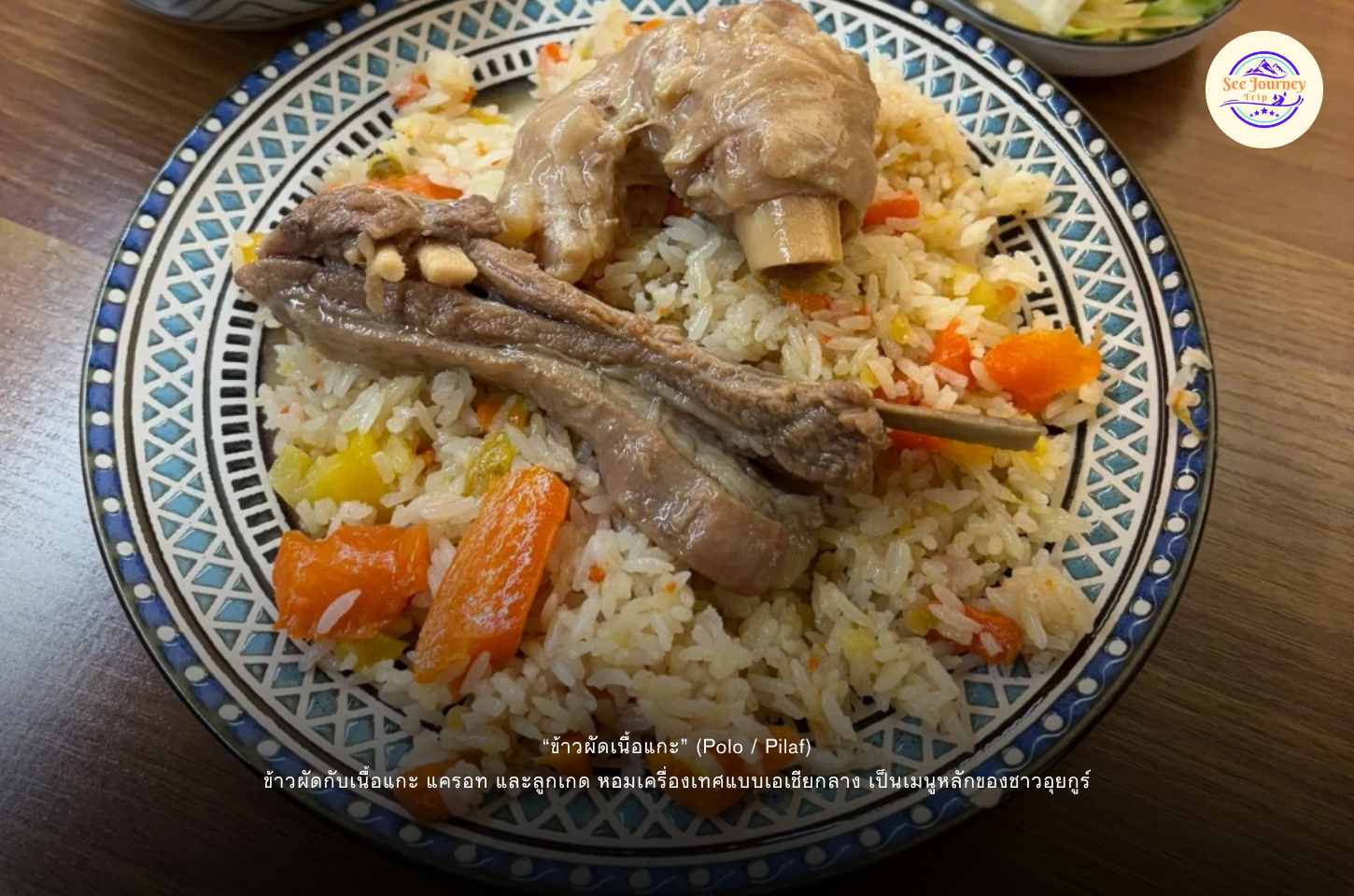 ข้าวพัดเนื้อแกะ (Polo หรือ Pilaf)  เป็นอาหารจานหลักที่มีชื่อเสียงของ ซินเจียงเหนือ และถือเป็นหนึ่งในเมนูที่สะท้อนวิถีชีวิตและวัฒนธรรมของชาวอุยกูร์ได้อย่างชัดเจน อาหารจานนี้มีรากฐานมาจากเอเชียกลาง และแพร่หลายมาตามเส้นทางสายไหม จนกลายเป็นอาหารประจำถิ่นที่ได้รับความนิยมอย่างกว้างขวาง