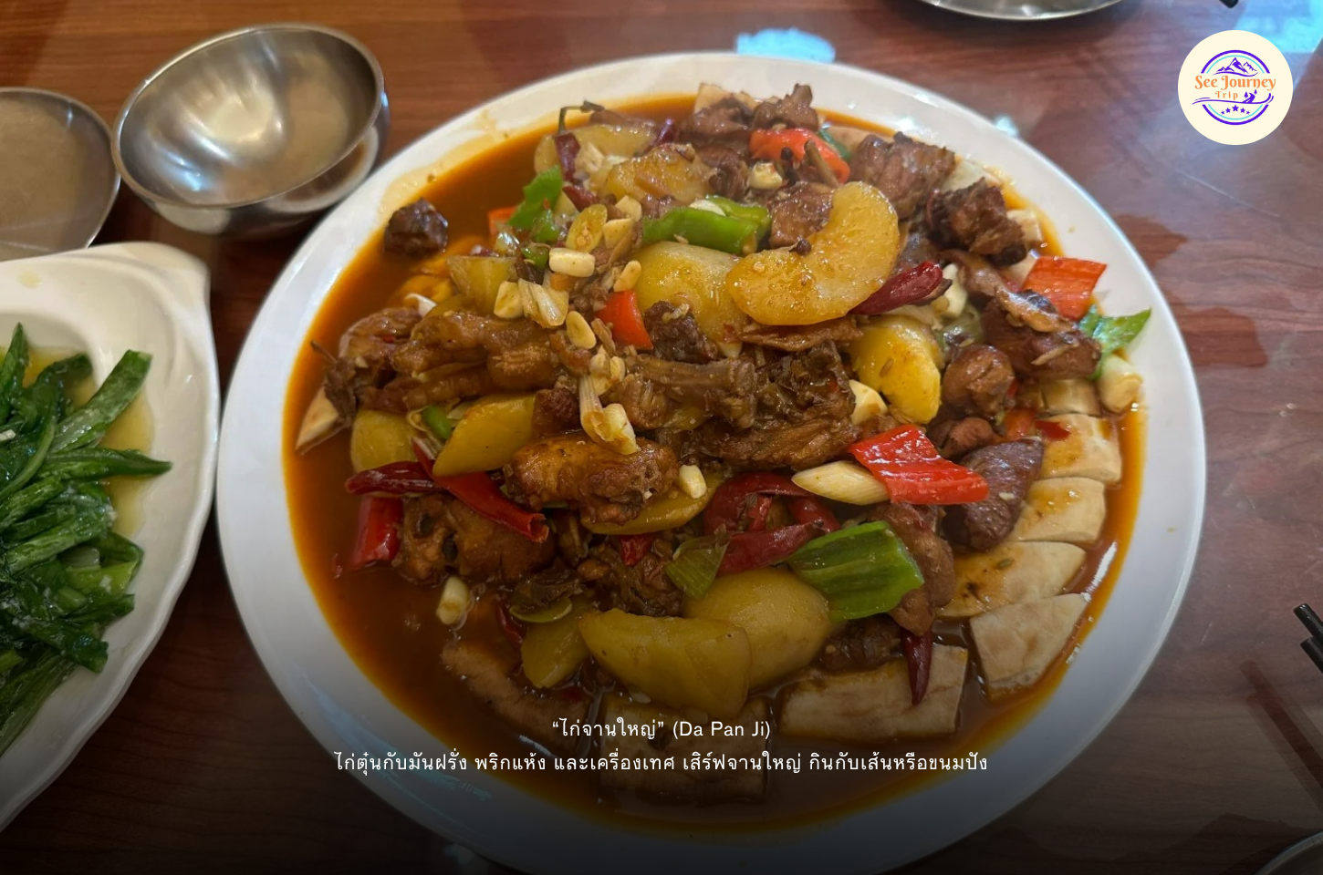 ไก่ถาดใหญ่ (Da Pan Ji) เป็นหนึ่งในเมนูซิกเนเจอร์ของ ซินเจียงเหนือ ที่สะท้อนวัฒนธรรมการกินแบบแบ่งปันได้อย่างชัดเจน ด้วยการเสิร์ฟมาในถาดขนาดใหญ่ เหมาะสำหรับการล้อมวงกินร่วมกันทั้งครอบครัวหรือกลุ่มเพื่อน ทำให้เมนูนี้ไม่ใช่แค่อาหาร แต่ยังเป็นสัญลักษณ์ของความอบอุ่นและความสัมพันธ์ของผู้คนในท้องถิ่น