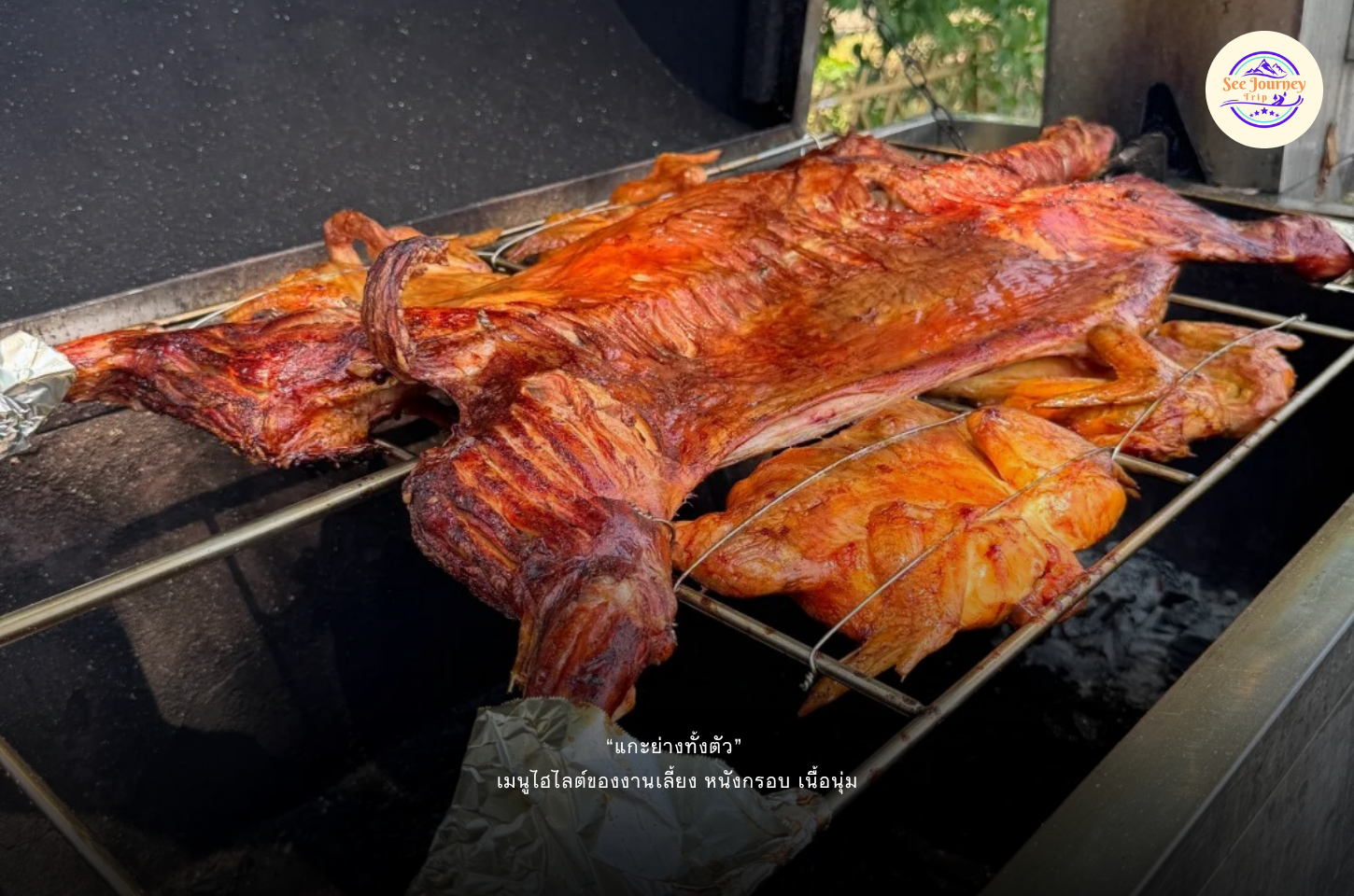 แกะย่างทั้งตัว มีความโดดเด่นที่กลิ่นหอมของเครื่องเทศผสมกับกลิ่นควันจากการย่าง เนื้อแกะมีความนุ่ม ไม่เหนียว และมีรสเค็มกลมกล่อม หนังด้านนอกกรอบเล็กน้อย เพิ่มมิติของเนื้อสัมผัสให้หลากหลายยิ่งขึ้น ทำให้ทุกส่วนของแกะสามารถรับประทานได้อย่างอร่อย