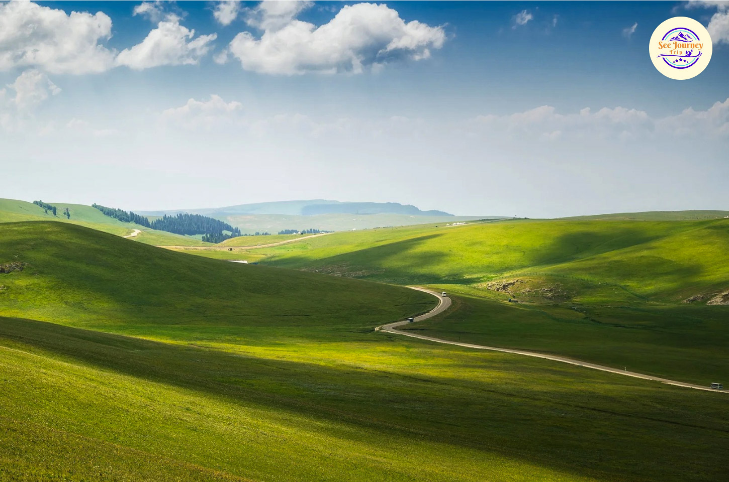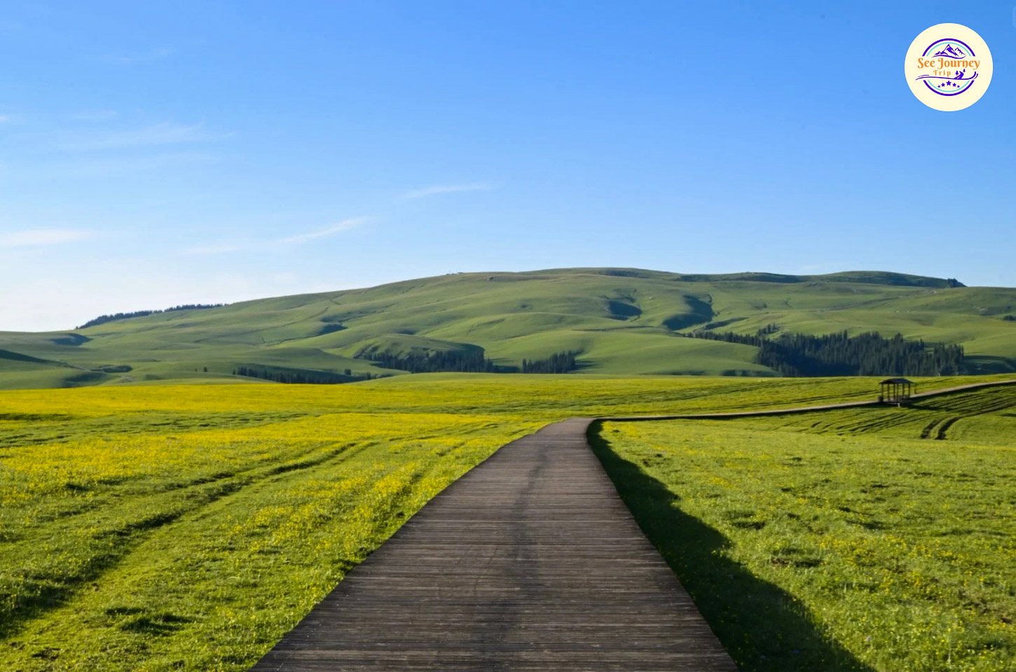 ทุ่งหญ้าแห่งนี้ตั้งอยู่ในเขต ซินเจียง ใกล้เทือกเขา เทียนซาน อันยิ่งใหญ่ ที่นี่ถูกขนานนามว่าเป็น “สวรรค์บนดิน” สำหรับนักเดินทางจากทั่วโลก ด้วยทัศนียภาพของทุ่งหญ้ากว้างใหญ่สุดสายตา ผสานกับภูเขาและท้องฟ้าสีคราม บรรยากาศบริสุทธิ์และเงียบสงบ ช่วยเติมเต็มความรู้สึกผ่อนคลายได้อย่างแท้จริง
