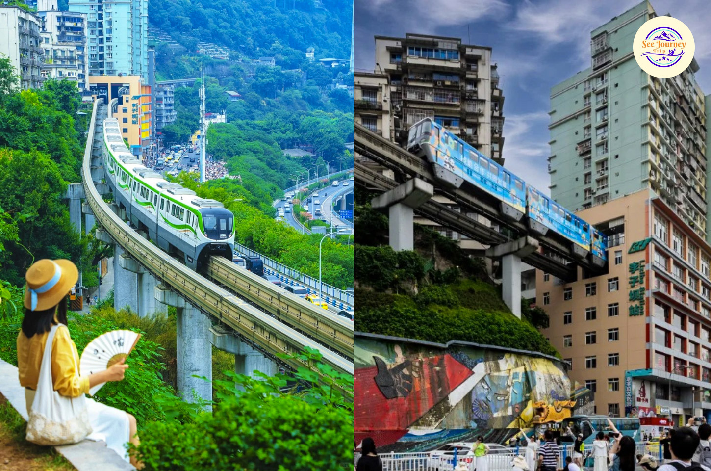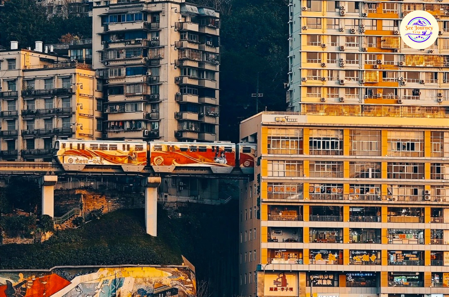 สถานีรถไฟฟ้าที่สร้างทะลุผ่านอาคารที่พักอาศัย เป็นเอกลักษณ์ของฉงชิ่งที่ไม่เหมือนที่ไหนในโลก รถไฟจะวิ่งผ่านกลางตึกชั้น 6–8 อย่างน่าทึ่ง ด้านในมีระบบกันเสียงทำให้ผู้อยู่อาศัยไม่เดือดร้อน จุดถ่ายรูปยอดฮิตคือด้านล่างของสถานี นักท่องเที่ยวมารอจังหวะรถไฟวิ่งผ่านเพื่อถ่ายคลิป กลายเป็นไวรัลในโซเชียลทั่วโลก บริเวณรอบ ๆ มีร้านกาแฟและจุดชมวิว สามารถขึ้นไปชมด้านบนของสถานีได้ด้วย วิวเมืองจากด้านบนก็ดูสวยไม่แพ้กัน ควรเช็คเวลารถไฟเพื่อไม่พลาดช็อตสำคัญ เหมาะกับสายคอนเทนต์และสายถ่ายวิดีโอ เป็นตัวอย่างการใช้พื้นที่เมืองอย่างชาญฉลาด สะท้อนความเป็น “เมืองภูเขา” ของฉงชิ่งใครมาแล้วไม่แวะถือว่าพลาดมาก