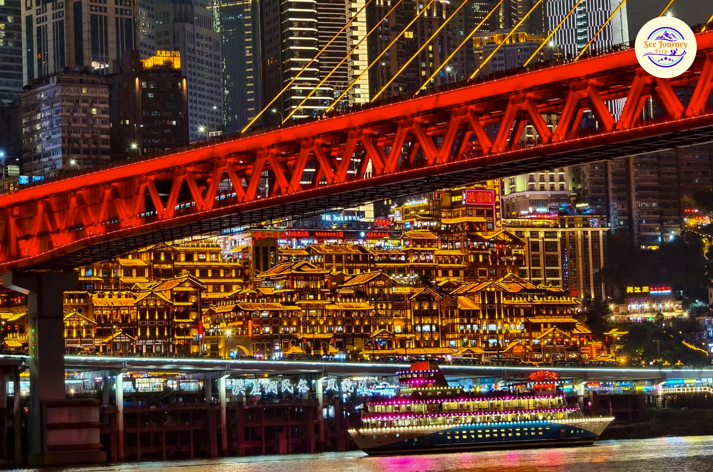 หงหยาต้งคือแลนด์มาร์กที่โด่งดังที่สุดของฉงชิ่งในยามค่ำคืน ตัวอาคารสร้างแบบสถาปัตยกรรมจีนโบราณยกสูงหลายชั้นริมหน้าผา เมื่อเปิดไฟตอนกลางคืนจะสวยเหมือนฉากในหนังแฟนตาซี แสงสีสะท้อนแม่น้ำทำให้บรรยากาศโรแมนติกมาก ภายในมีร้านอาหาร ร้านของฝาก และคาเฟ่มากมาย เหมาะสำหรับเดินเล่น ถ่ายรูป และชิมอาหารท้องถิ่น ช่วงเย็นถึงค่ำคือเวลาที่ดีที่สุดในการมาเยือน นักท่องเที่ยวแน่นเกือบทุกวันเพราะความสวยระดับโลก มุมถ่ายรูปยอดนิยมคือฝั่งตรงข้ามแม่น้ำ จะได้ภาพเต็มของอาคารทั้งหลังแบบอลังการ แนะนำให้มาช่วงหัวค่ำเพื่อเลี่ยงคนเยอะ บรรยากาศคล้ายเมืองโบราณผสมความทันสมัย ถือเป็นจุดเช็คอินที่ห้ามพลาดเมื่อมาฉงชิ่ง ใครชอบถ่ายรูปกลางคืนต้องหลงรักที่นี่ เป็นภาพจำของเมืองฉงชิ่งอย่างแท้จริง