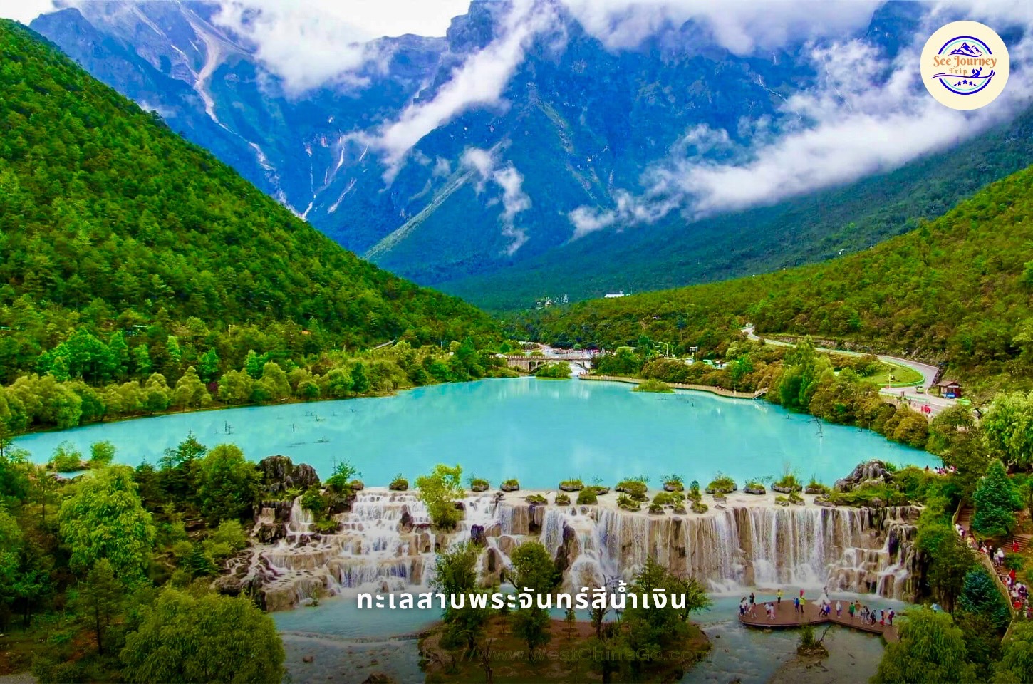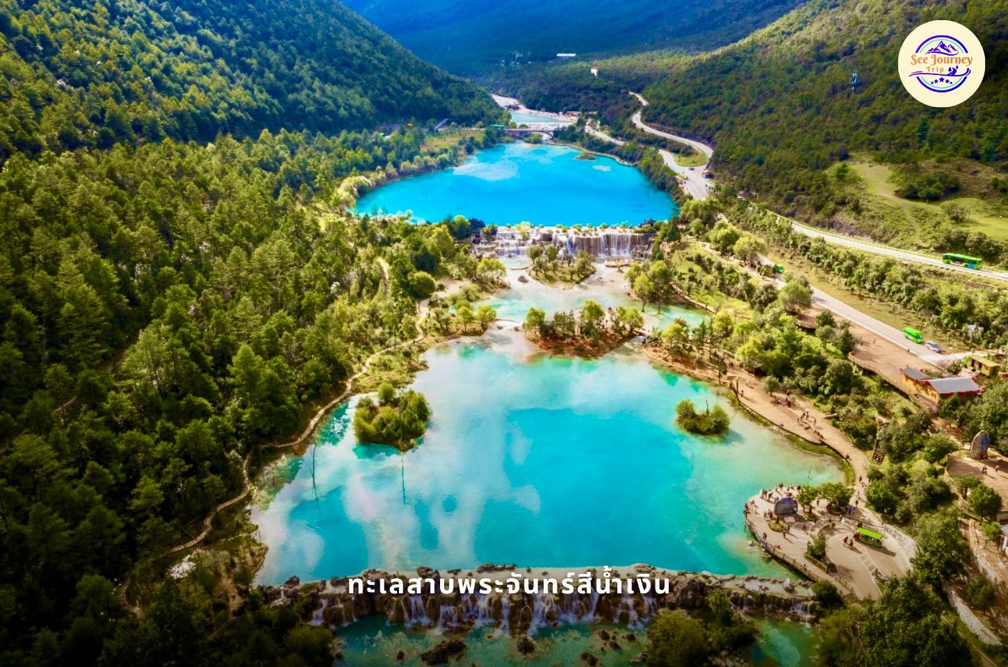 หุบเขาพระจันทร์สีน้ำเงิน ตั้งอยู่ใกล้กับภูเขาหิมะมังกรหยก ต้องบอกเลยว่ามาที่นี่ไม่ผิดหวังแน่นอนแค่วิวมังกรหยกก็อลังการมากแล้ว นี่ยังได้ฟิลแบบทะเลสาบน้ำใสไปอีก นอกจากทะเลสาบที่มีลักษณะคล้ายหยกสีน้ำเงินอันน่าหลงใหลแล้ว บริเวณจุดชมวิวหุบเขาพระจันทร์สีน้ำเงินยังมีทิวทัศน์ที่สวยงาม เช่น น้ำตกขนาดเล็ก ทะเลสาบหยูเย่ และทะเลสาบจิงถาน ที่หลายคนให้ฉายาว่าเป็น "จิ่วจ้ายโกวน้อย"